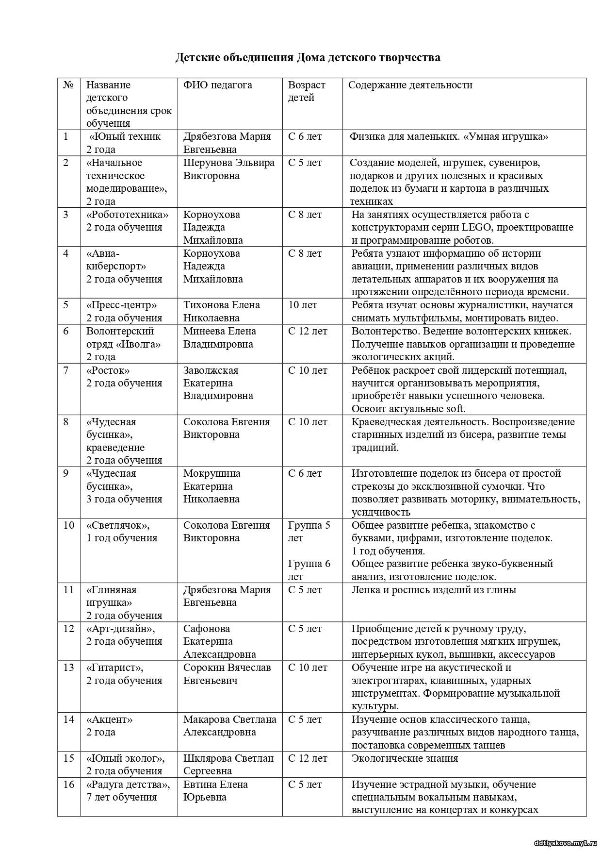 Информация о детских объединениях - здесь